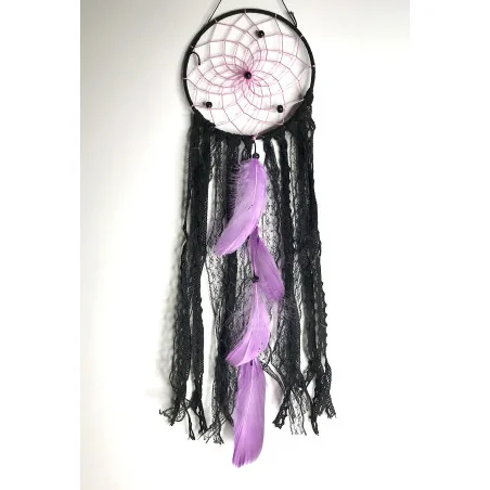Cet attrape-rêves unique combine élégance et énergie protectrice. Son tissage délicat capte les énergies de la nuit et laisse passer uniquement les rêves positifs. Les plumes violettes symbolisent la spiritualité et l’intuition, tandis que le noir apporte protection et ancrage.