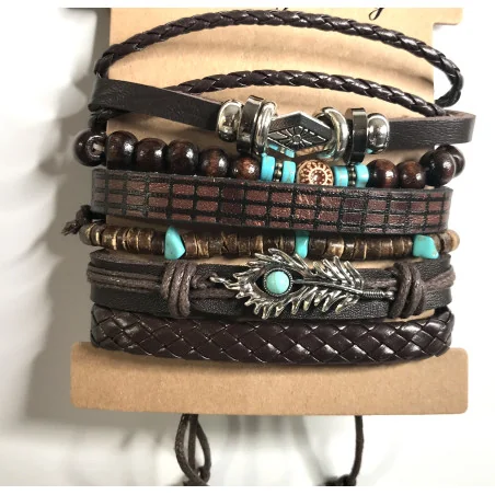 Apportez une touche unique à vos tenues avec ce lot de bracelets bohème et vintage. Chaque paquet contient plusieurs bracelets aux styles variés : cuir tressé, perles en bois, perles turquoise synthétiques et pendentifs en alliage de zinc.