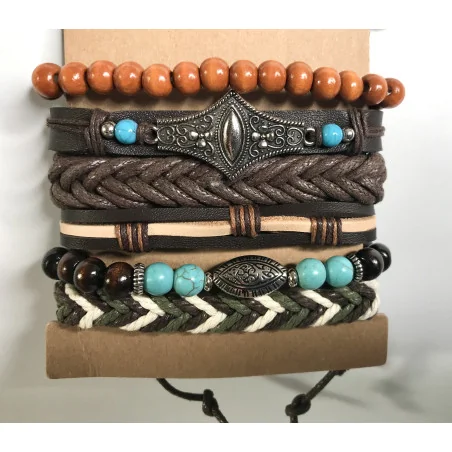 Apportez une touche unique à vos tenues avec ce lot de bracelets bohème et vintage. Chaque paquet contient plusieurs bracelets aux styles variés : cuir tressé, perles en bois, perles turquoise synthétiques et pendentifs en alliage de zinc.