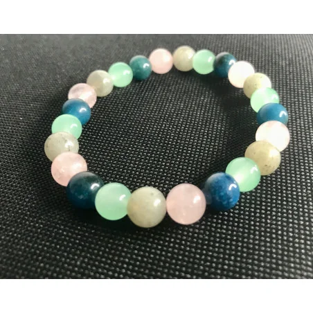 Bracelet composé de Quartz rose, Aventurine verte, Apatite bleue et Labradorite.