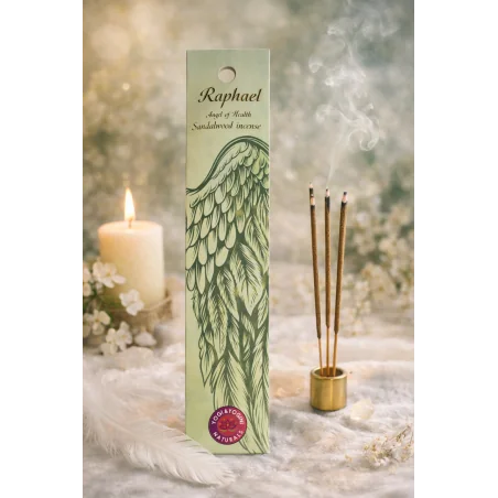 Cet encens dédié à l’Archange Raphaël, ange de la guérison et du réconfort, accompagne les démarches de soin, d’apaisement émotionnel et d’harmonisation du corps et de l’esprit. Raphaël est reconnu comme le guide des processus de guérison profonde, qu’ils soient physiques, émotionnels ou énergétiques.