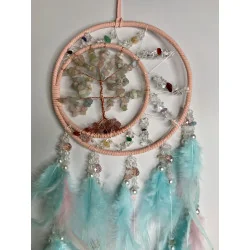 Attrape rêves rose et bleu turquoise & arbre de vie